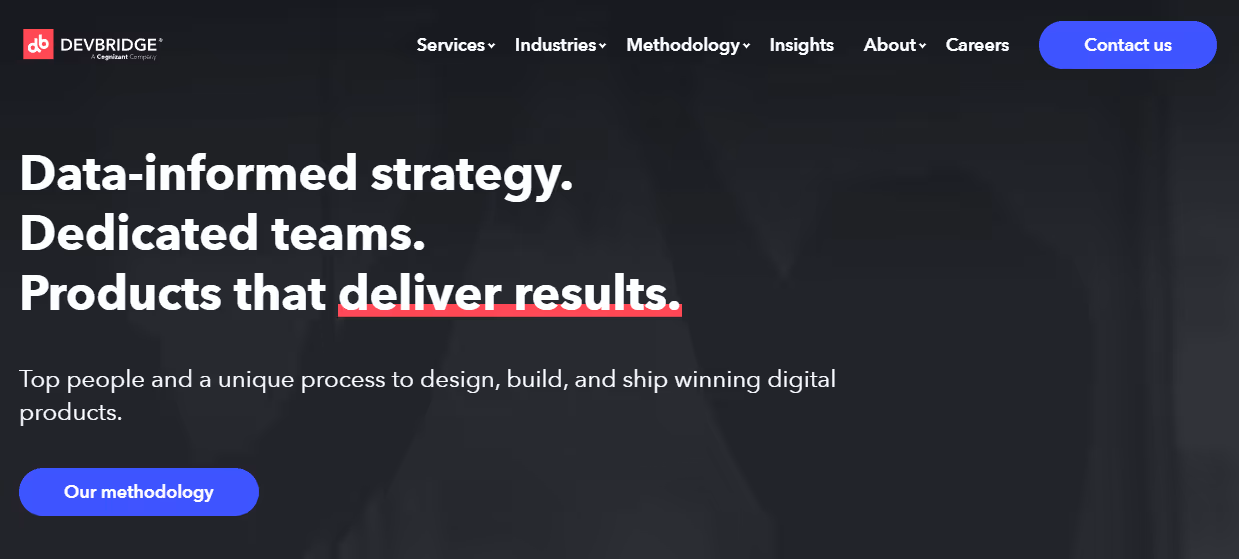 Devbridge is a technology partner for Global 2000 companies seeking digital transformation. They built custom software that delivers measurable results for hospitals, logistics companies, and banks with their software solutions. Their service lines include application platforms, mobile app development, UX/UI design, web development, and custom software development.