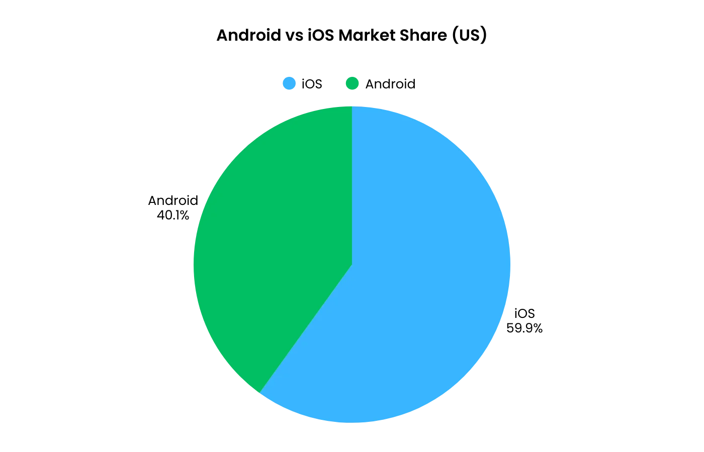 As of 2026, iOS holds 59.8% of the US mobile market compared to Android's 40%.