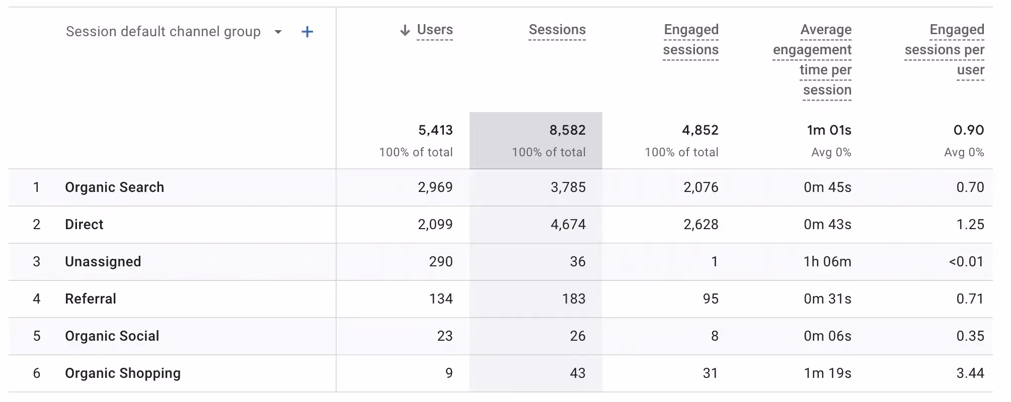 The number you want here is that for sessions. Don’t mistake this for users, which is the total number of unique users who viewed your site over the selected period, some of whom may have had multiple visits.