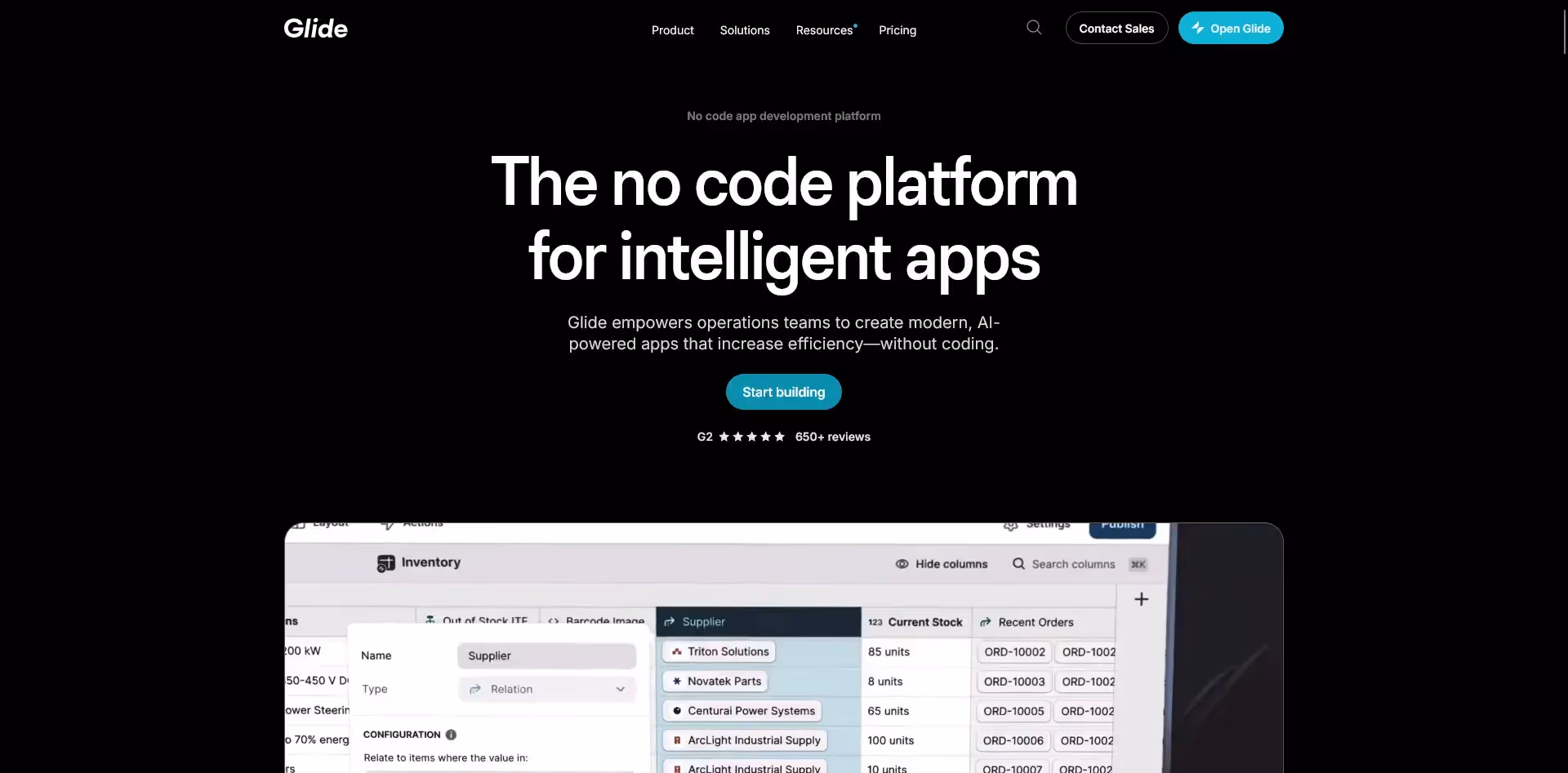 Glide takes a unique approach to app creation by transforming spreadsheets into functional, attractive mobile apps and web interfaces.
