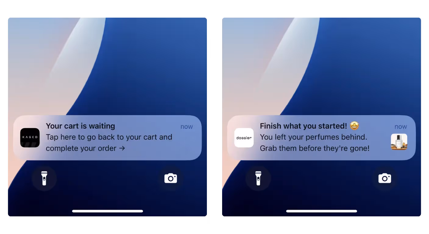 They get a notification right on their lock screen, and one tap brings them back into the app to finish their purchase.