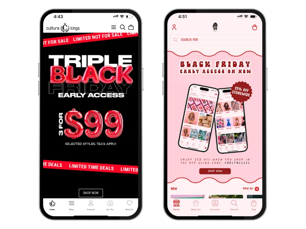 This BFCM, we analyzed results from 100+ shopping apps, including MobiLoud customers and other popular DTC apps, to understand how brands approached Black Friday; particularly through mobile apps, one of the most underutilized yet consistently overperforming ecommerce channels.