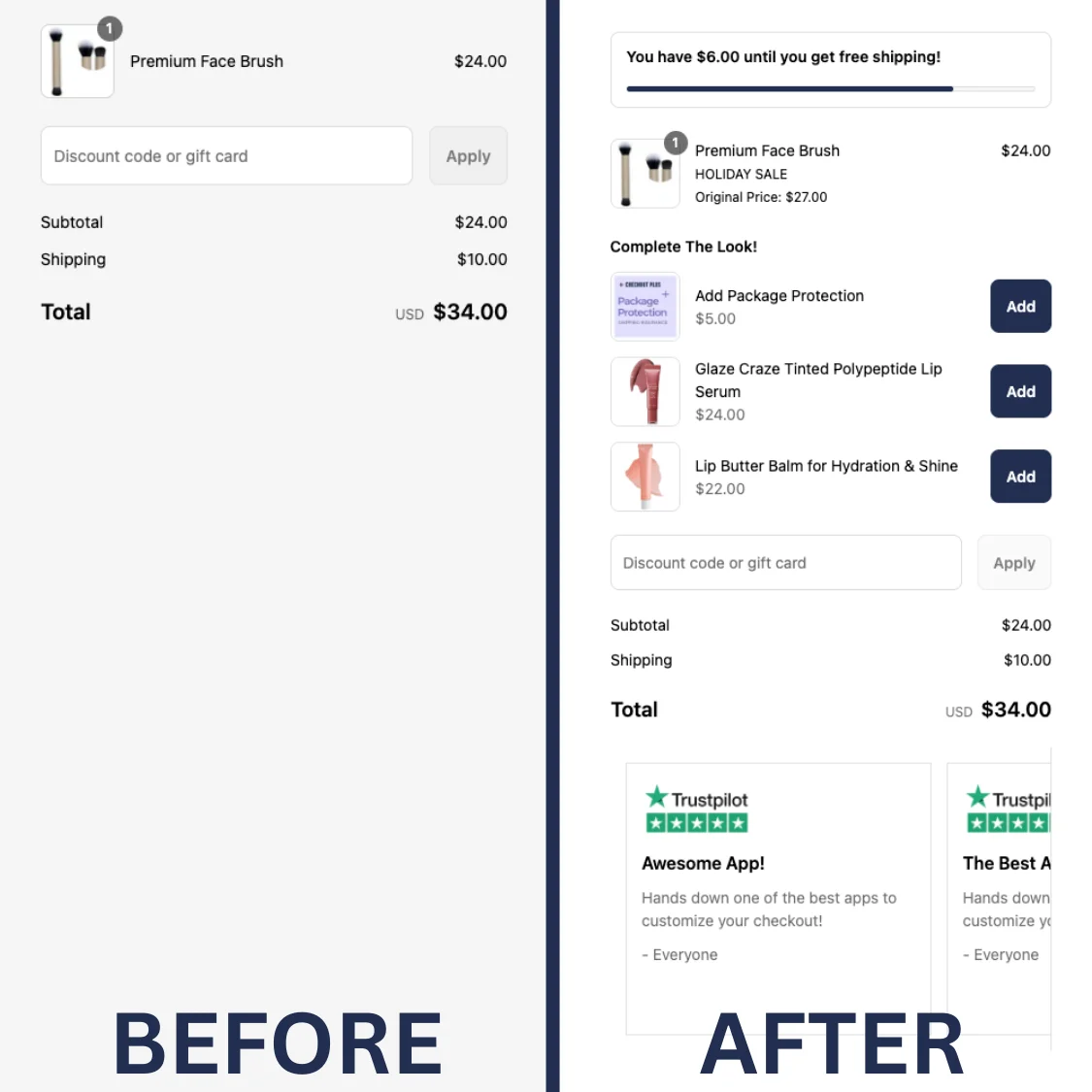 It doesn't take a lot of work - certain Shopify apps allow merchants to introduce these elements without needing to rebuild their checkout experience.