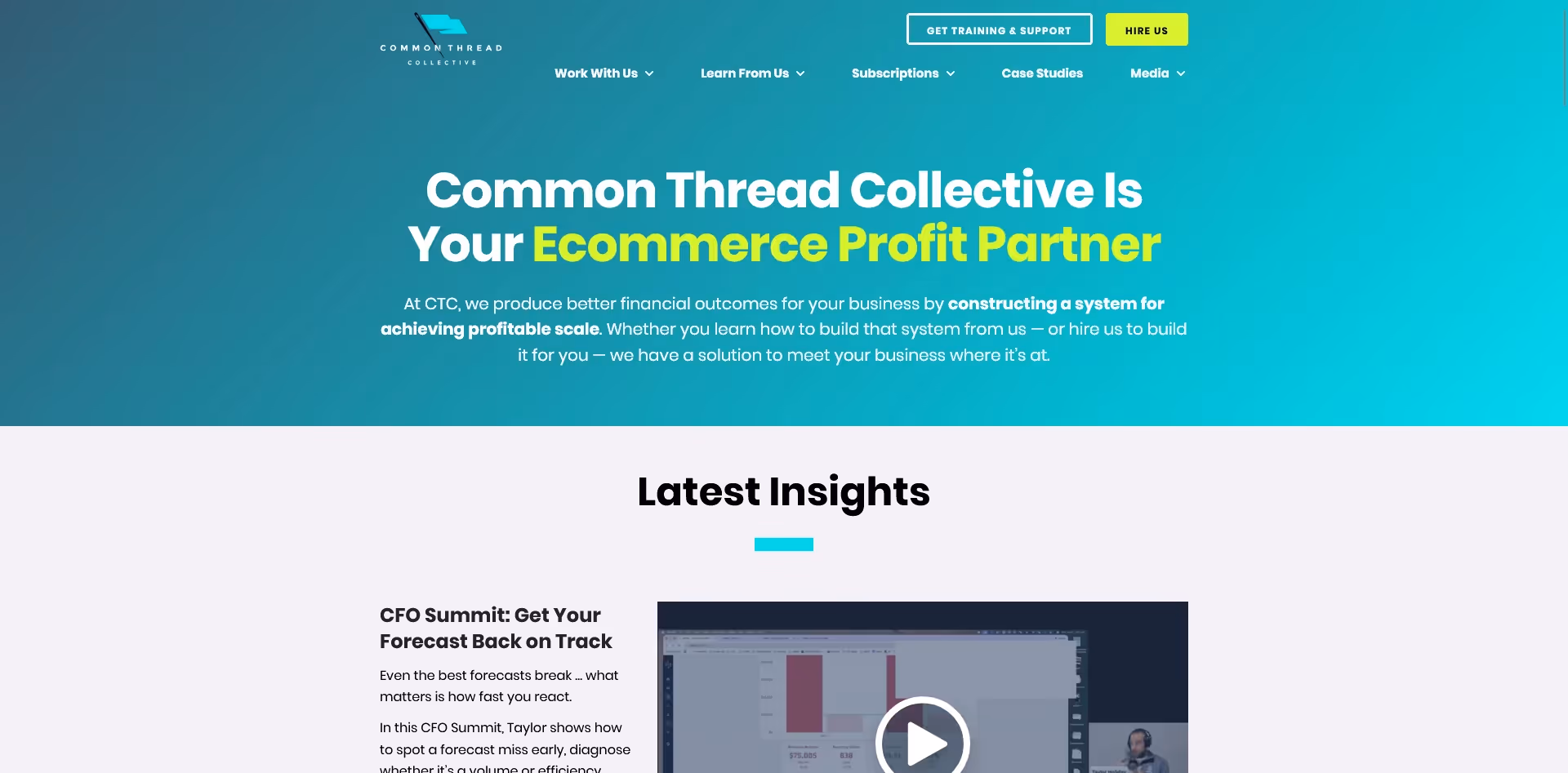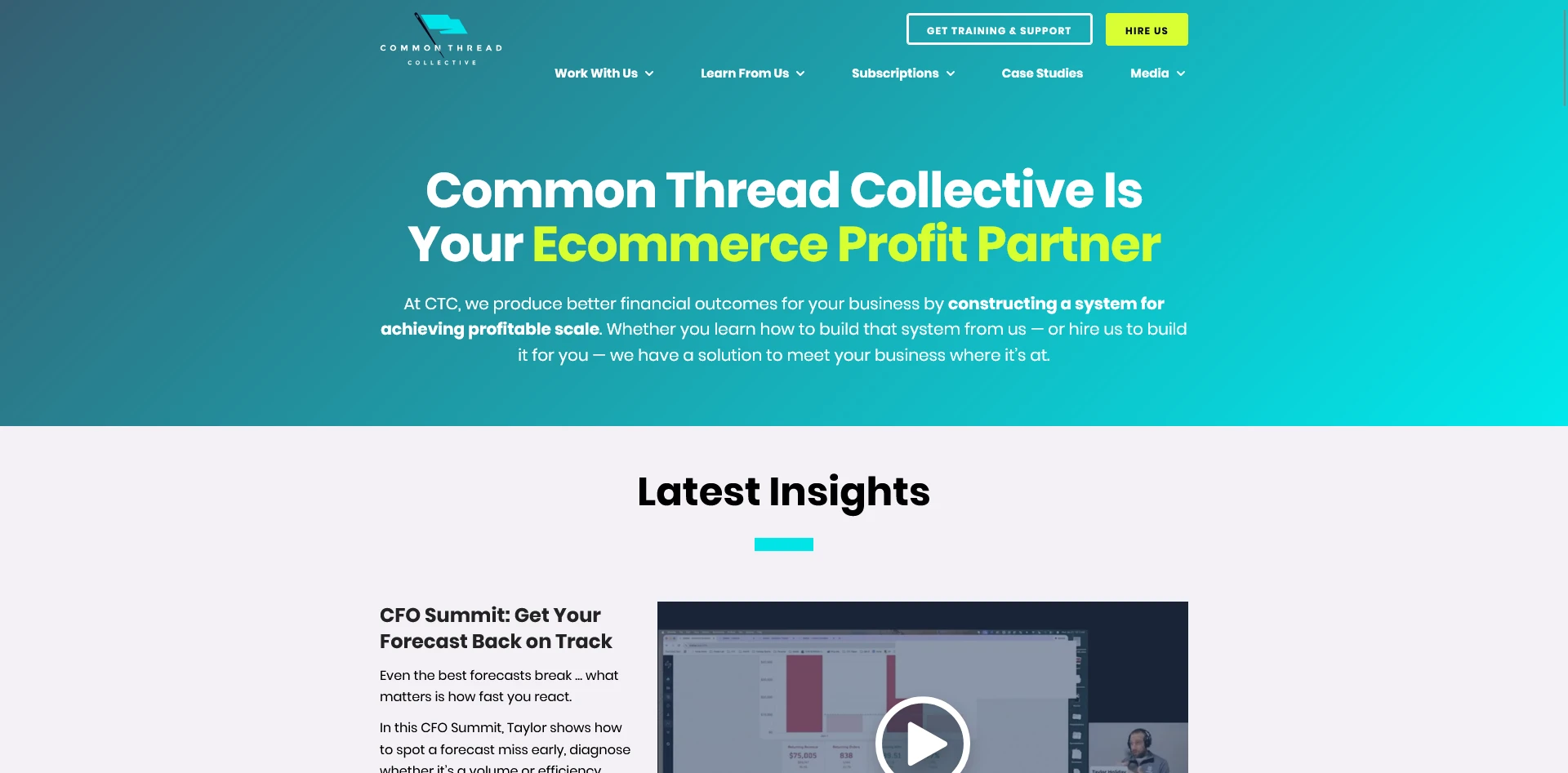 Common Thread Collective works with DTC brands doing $10M-$100M in annual online revenue. The agency positions itself as a growth partner focused on building predictable systems for profitable scale.