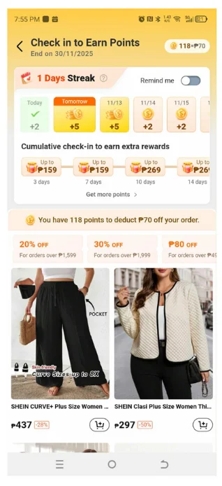 - Shein and Temu: daily streaks, points, and reward wheels that turn shopping into habit.