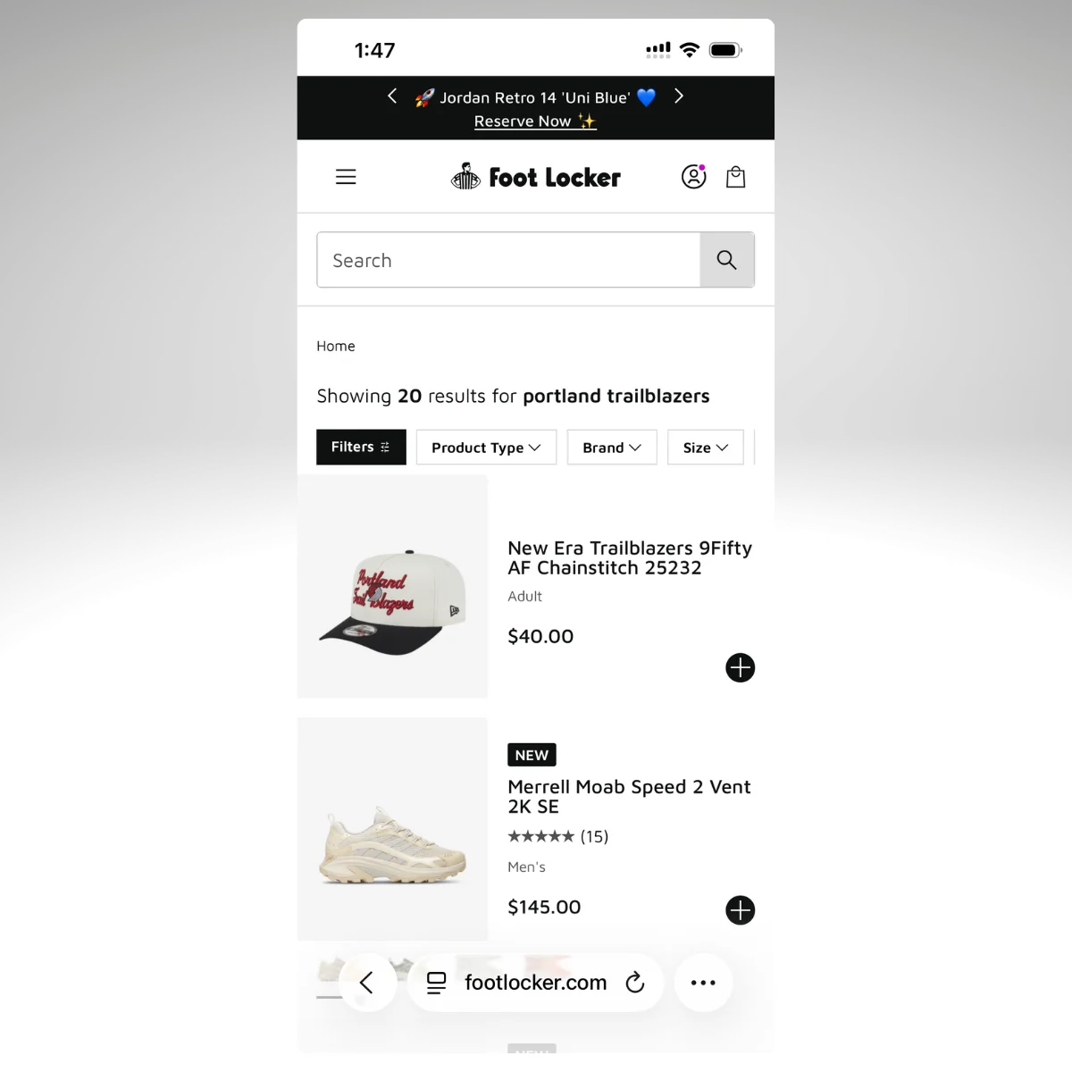 - What does the search experience look like for customers who use the app vs the website? Can you show me a side-by-side?