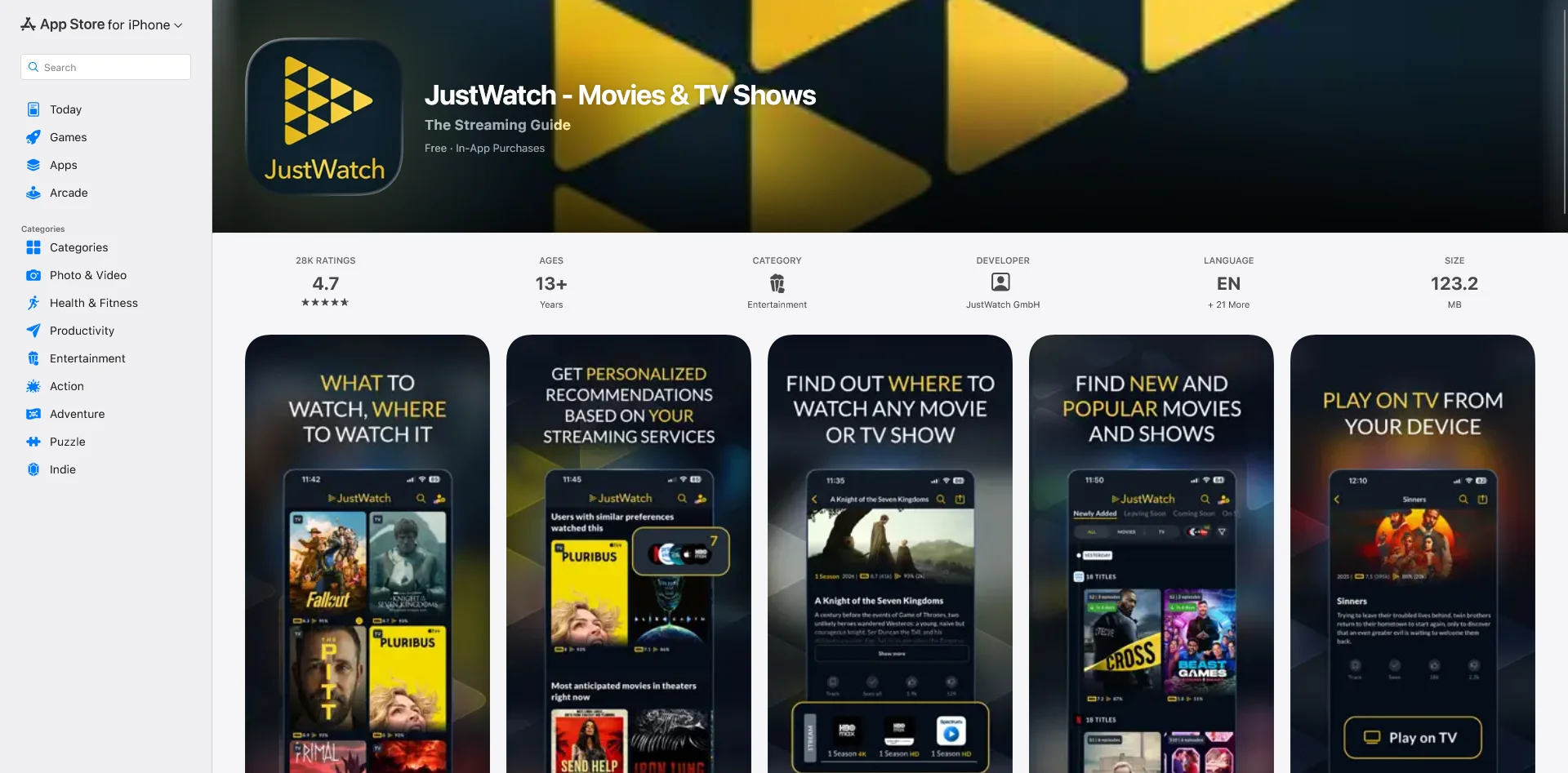 The app handles large volumes of content data and real-time availability information across multiple markets - a legitimate technical workload. JustWatch's consistent 4.7+ app store ratings suggest the hybrid approach hasn't created any user experience tradeoff.