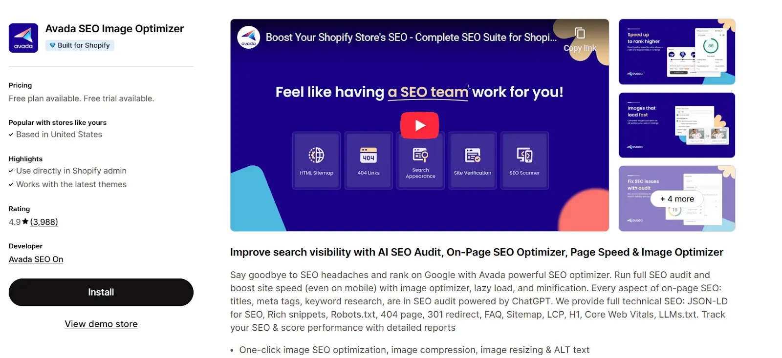 Avada SEO Image Optimizer focuses on both. It addresses weak on-page SEO signals and reduces the performance drag caused by large, unoptimized images - a common issue in Shopify stores.