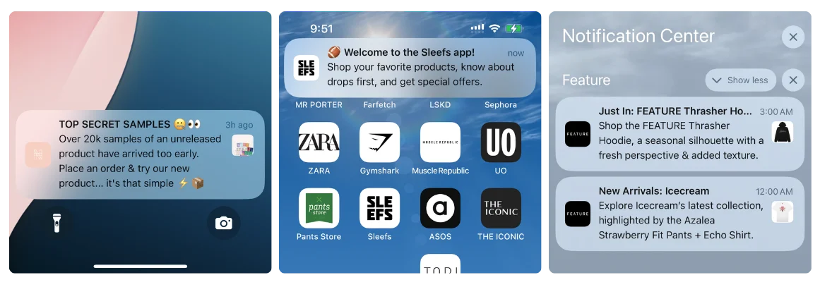 They can tap on the notification to open the app, and brands can include shortcuts on a notification (e.g. a “shop now” button that takes them to a specific product page in the app).