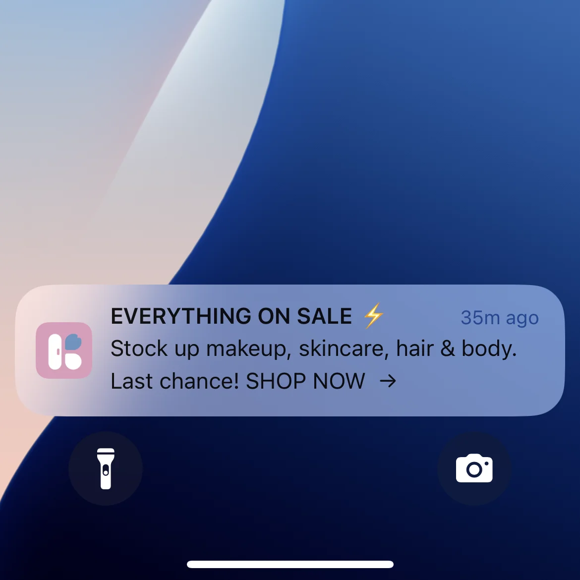 The big advantage of push notifications is that they show up with your brand’s logo on the user’s screen.