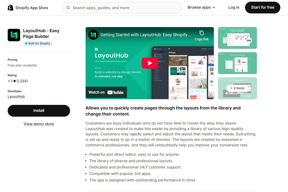 One practical detail that's easy to overlook: pages you build with LayoutHub stay on your store even if you remove the app. That's not the case with every page builder, and it reduces the risk of trying it out.
