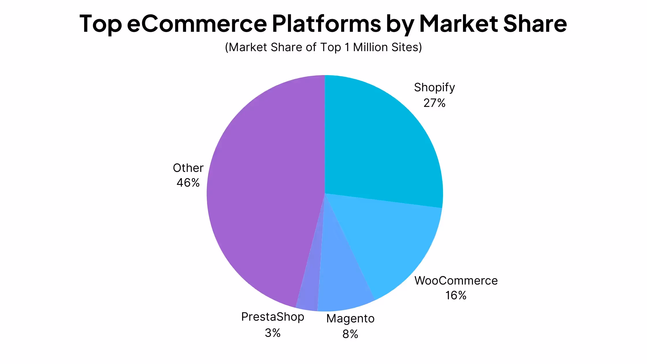 - Among the top 1 million eCommerce websites by traffic, Shopify (including Shopify Plus) has 27% market share.