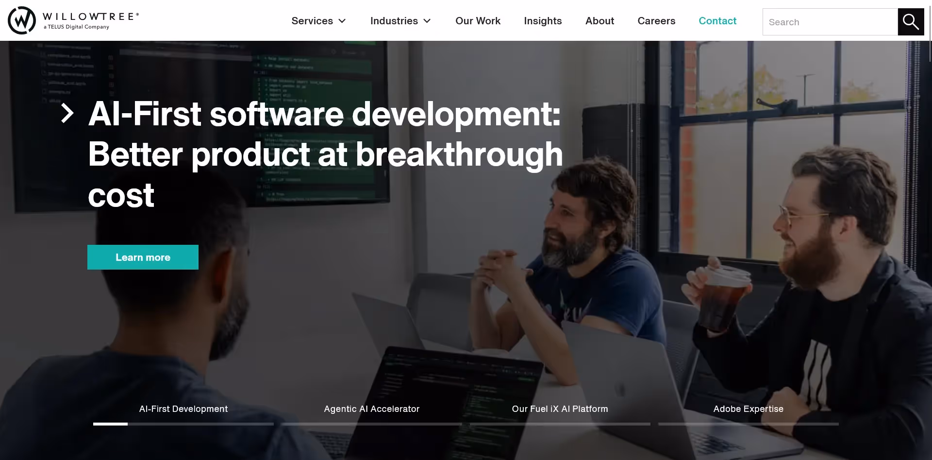 Price range: WillowTree is a premium enterprise-focused partner, with projects typically starting at $250,000 and often ranging well above $1 million depending on complexity. Hourly rates tend to fall in the $150–$199 range.
