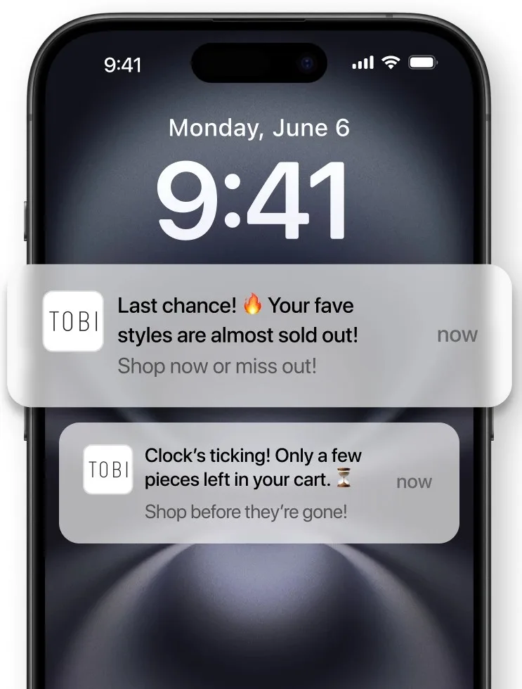 The real shift is what happens after someone walks away from their cart. With abandoned cart push notifications, you can tap them on the lock screen and drop them straight back into a ready-to-buy session.