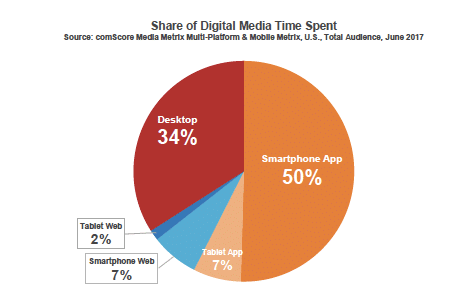 For example, the 2017 Mobile App Report from comScore shows the dominance of mobile apps on device share of digital media time.