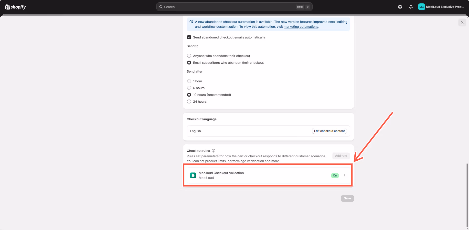 4. Scroll down to Checkout Rules.