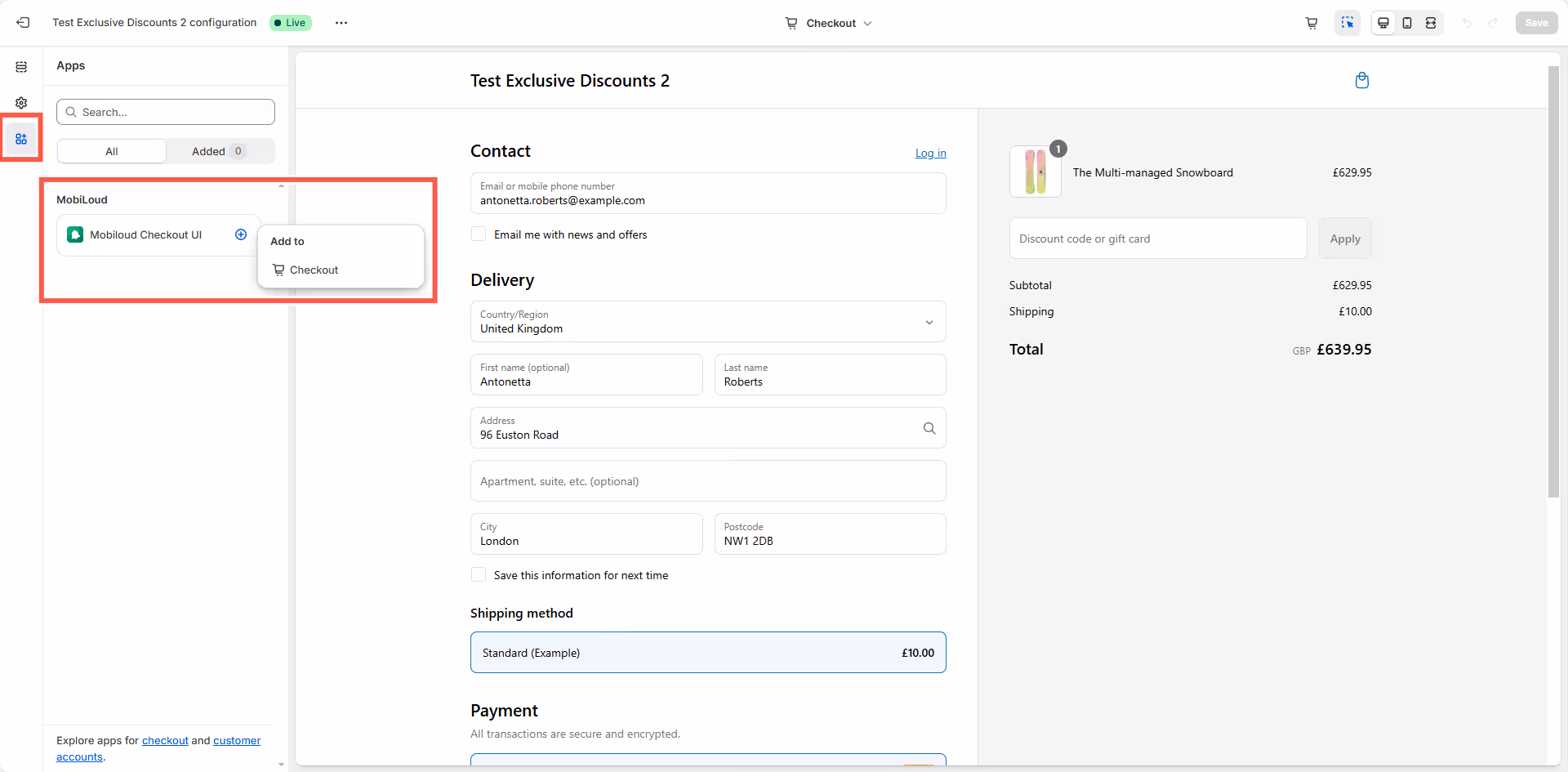4. Select Mobile Checkout UI and add it to the checkout.