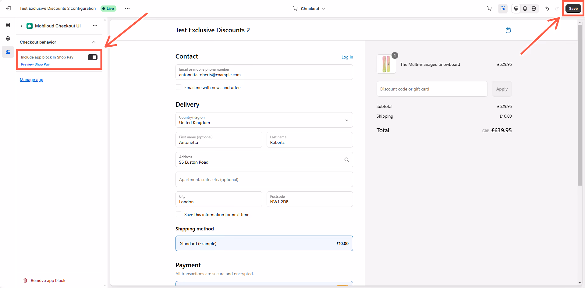 5. Enable the "Include app block in Shop Pay" option.