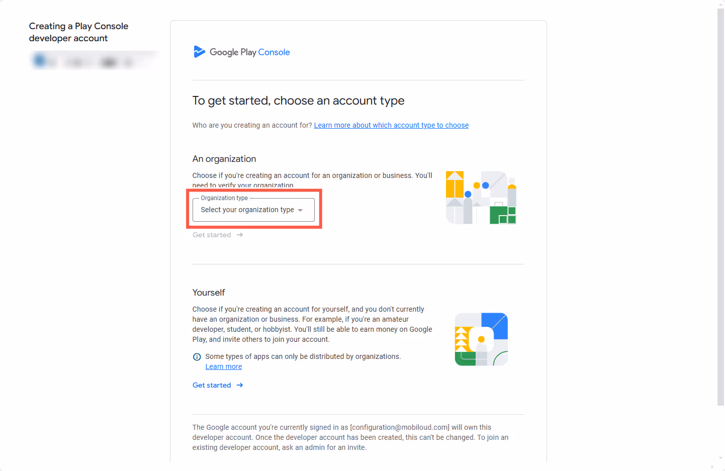 Using a personal account can lead to ownership complications, especially if the individual who created the account leaves your company. To avoid these issues, always register your Google Play Developer account under your business entity.