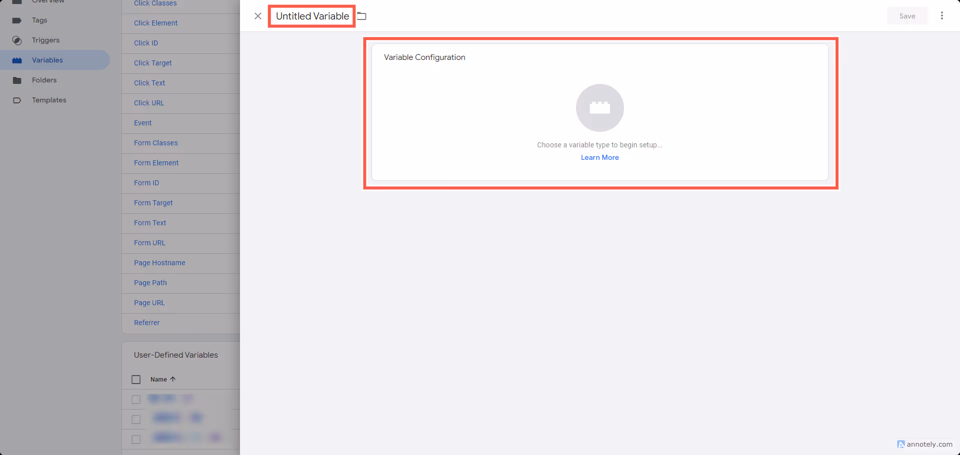 Name the variable "MobiLoud - Mobile App Tracking" and click on the large block that will appear to start configuring your Variable: