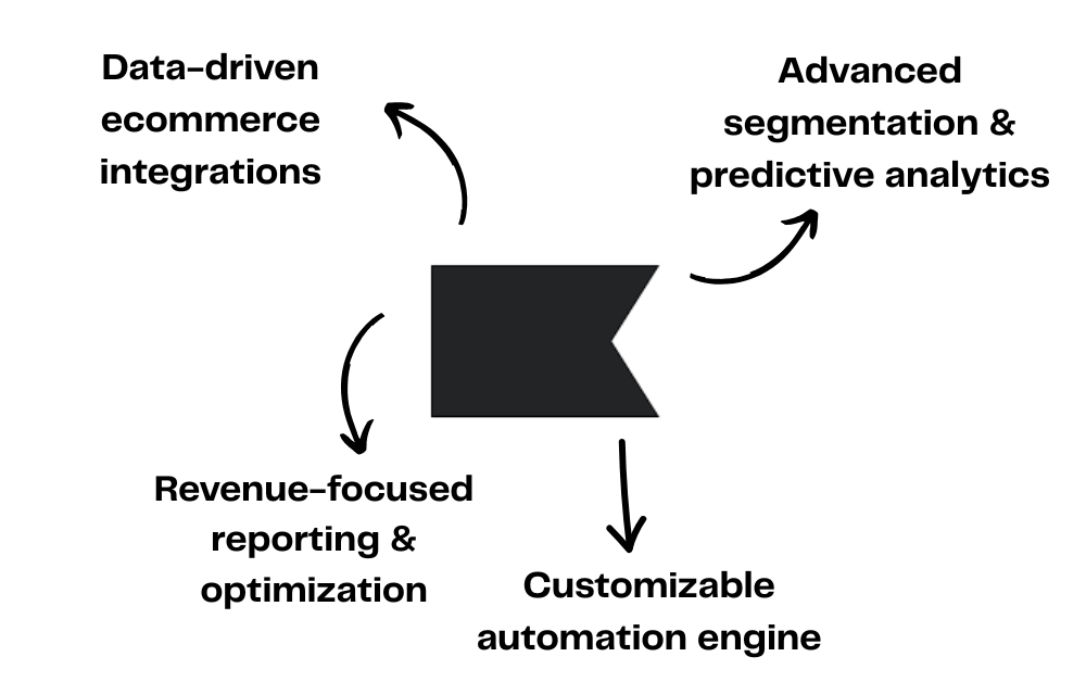 It integrates deeply with Shopify, WooCommerce, BigCommerce, and other platforms to pull real-time behavioral data into your campaigns.