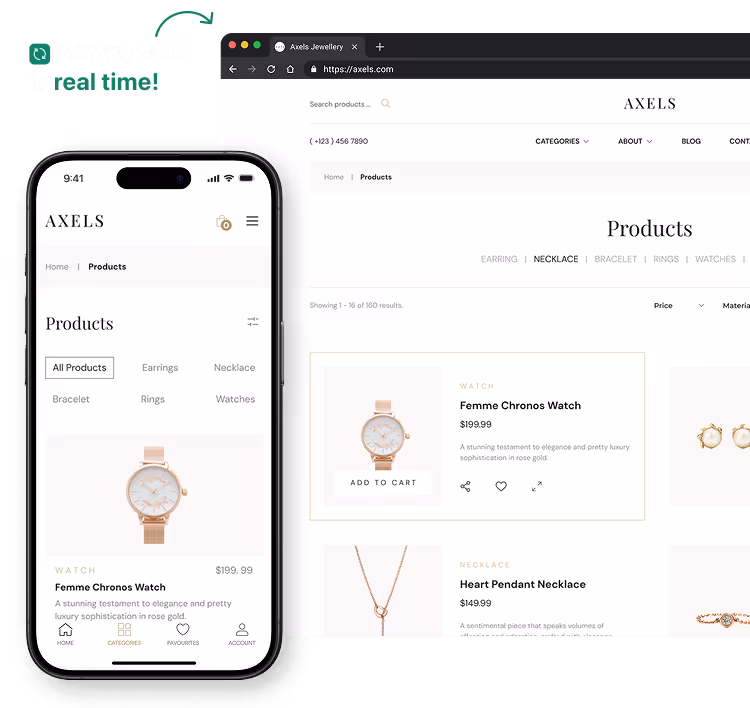Your website remains the single source of truth. Update your catalog, content, or inventory once, and it’s reflected instantly in your app. Keep your operations focused on product, not app upkeep.