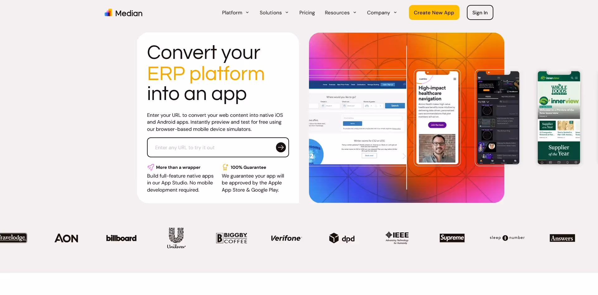 Median also uses a web-view approach, but you'll still need to define and test mobile navigation separately in code, increasing complexity and ongoing maintenance.