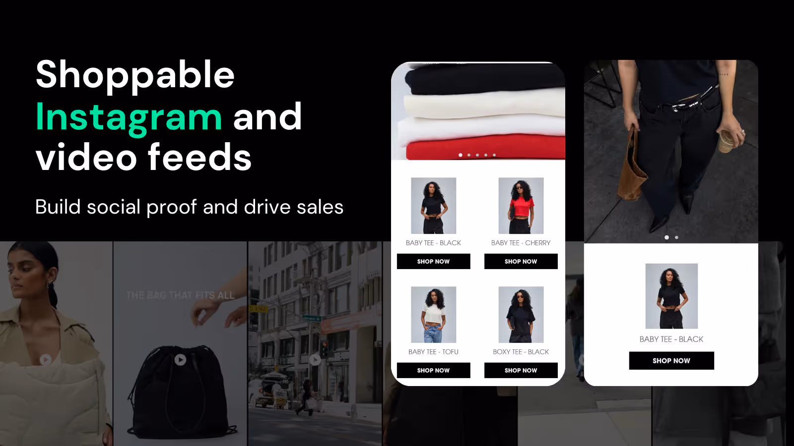 - Dynamic, shoppable Instagram galleries on your home screen inspire product discovery and drive clicks straight to product pages.