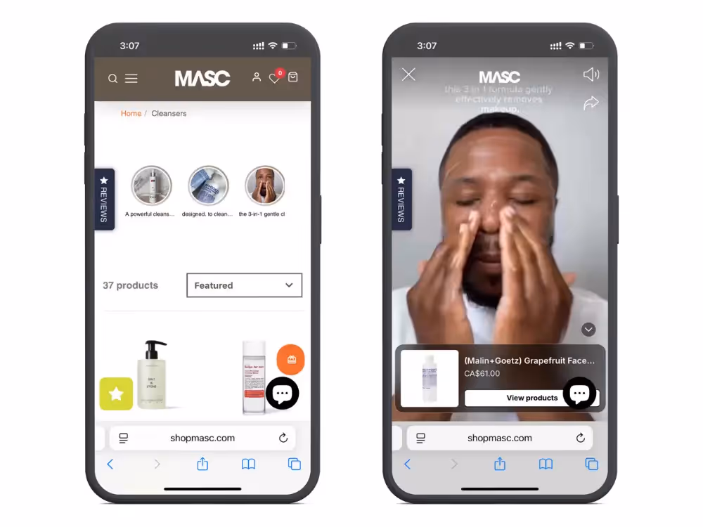 Every shoppable video, UGC reel, and live shopping widget you run on your website works 1‑for‑1 inside a MobiLoud-powered mobile app.
