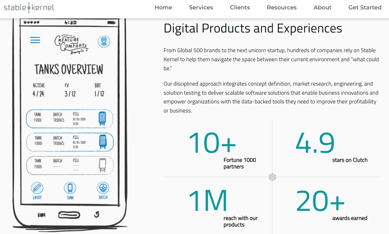 Stable Kernel is a custom software and technology firm that builds end-to-end software solutions for businesses. They specialize in product positioning, mobile and web development, backend services, emerging technologies, and the Internet of Things. Their services offered are mobile app development, UX/UI design, custom software development, branding, market research, and wearable app development. They have worked with clients in the restaurant, nonprofit, consumer products, manufacturing, and software industries.