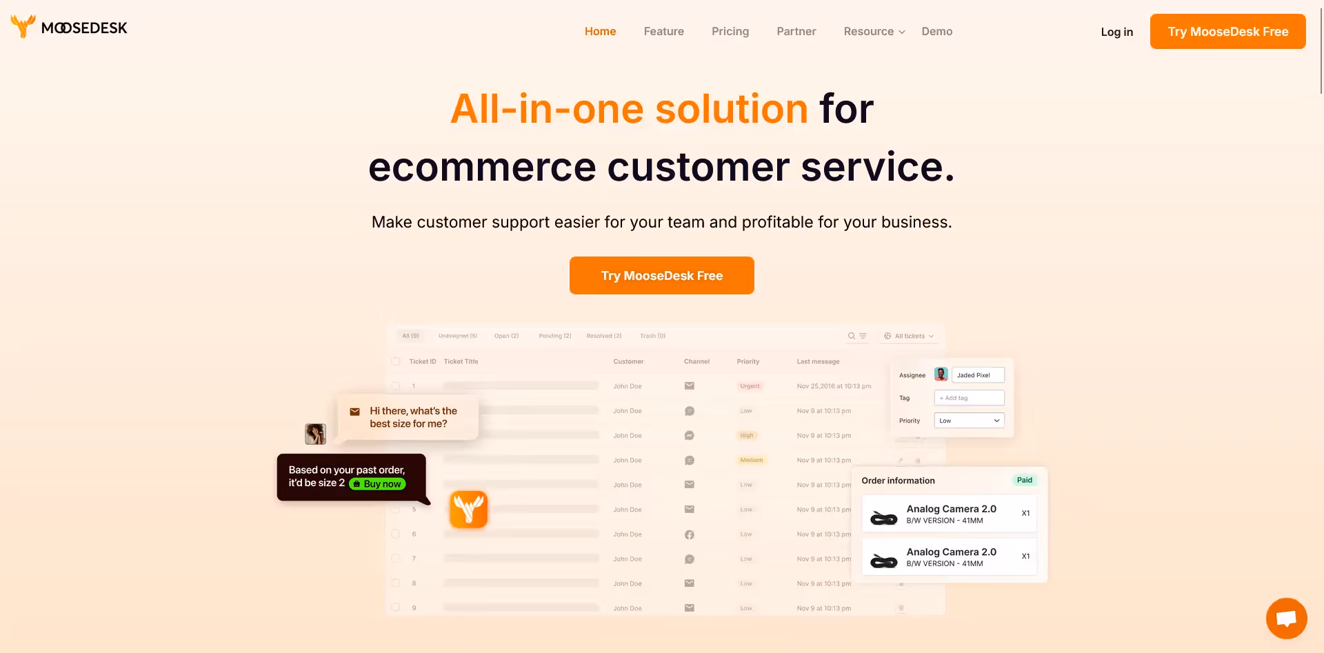 - Key Features: Provides a unified helpdesk, AI automation, live chat, FAQ, and integrations with over 100 ecommerce tools.
