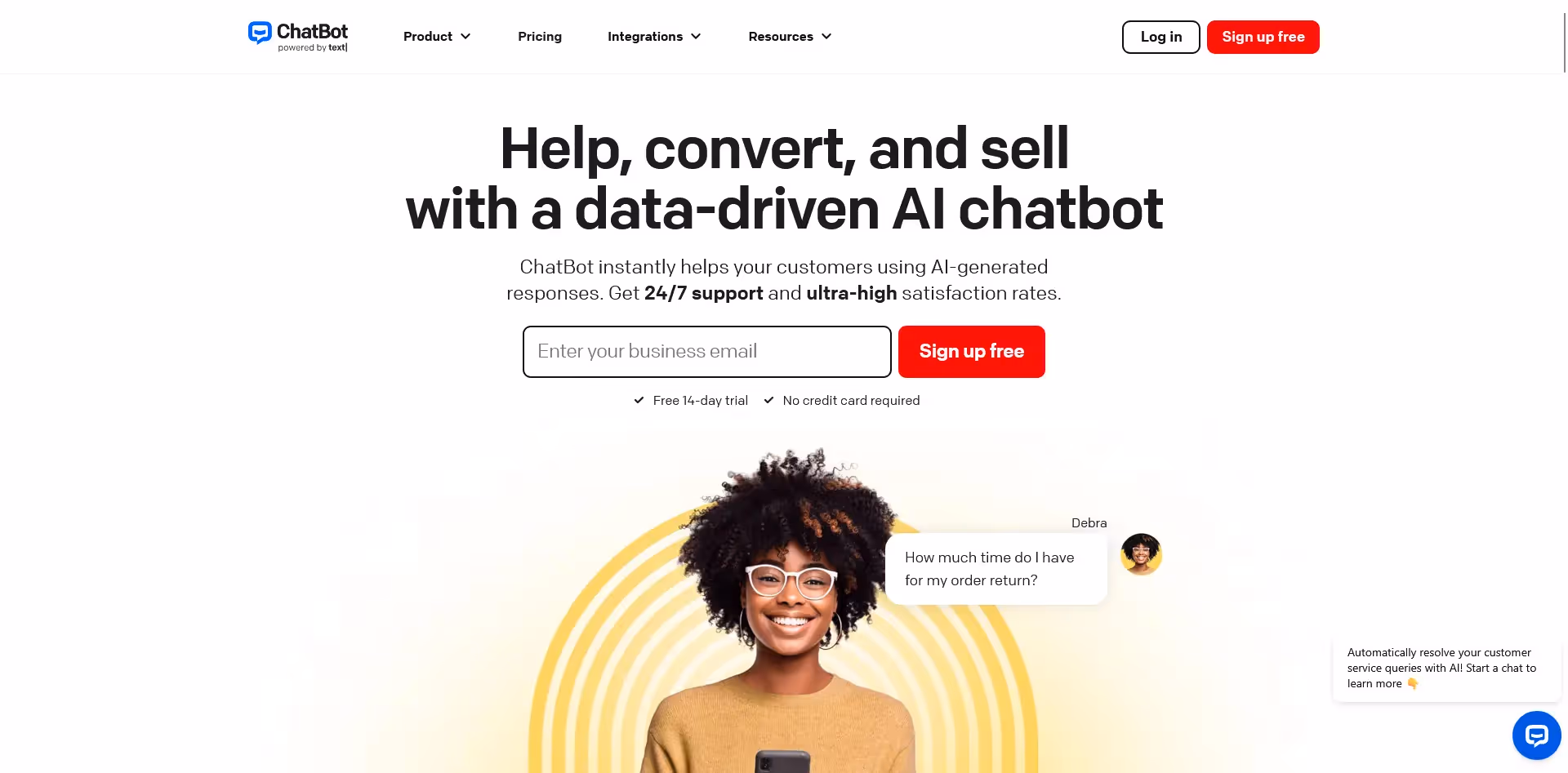 Chatbots have shown to increase website conversion rates by anywhere from 10 to 100%. Customers use them (88% of shoppers have had a first-hand experience with chatbots in the last year), and while some still have trepidations about AI, studies show 83% of people either trust the information given by AI chatbots, or are neutral on it.