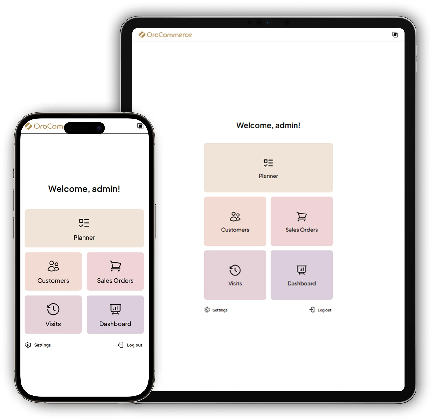 OroCommerce offers a Progressive Web App (PWA) solution, notably the Field Sales App.